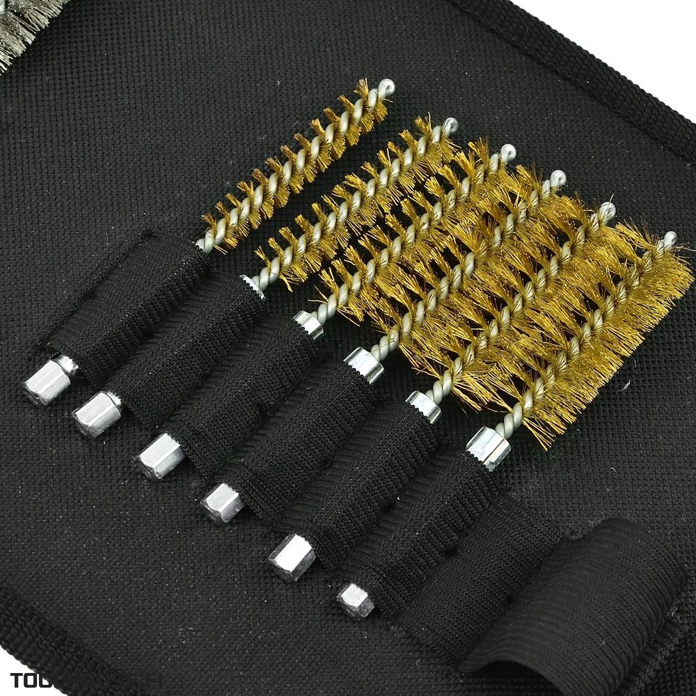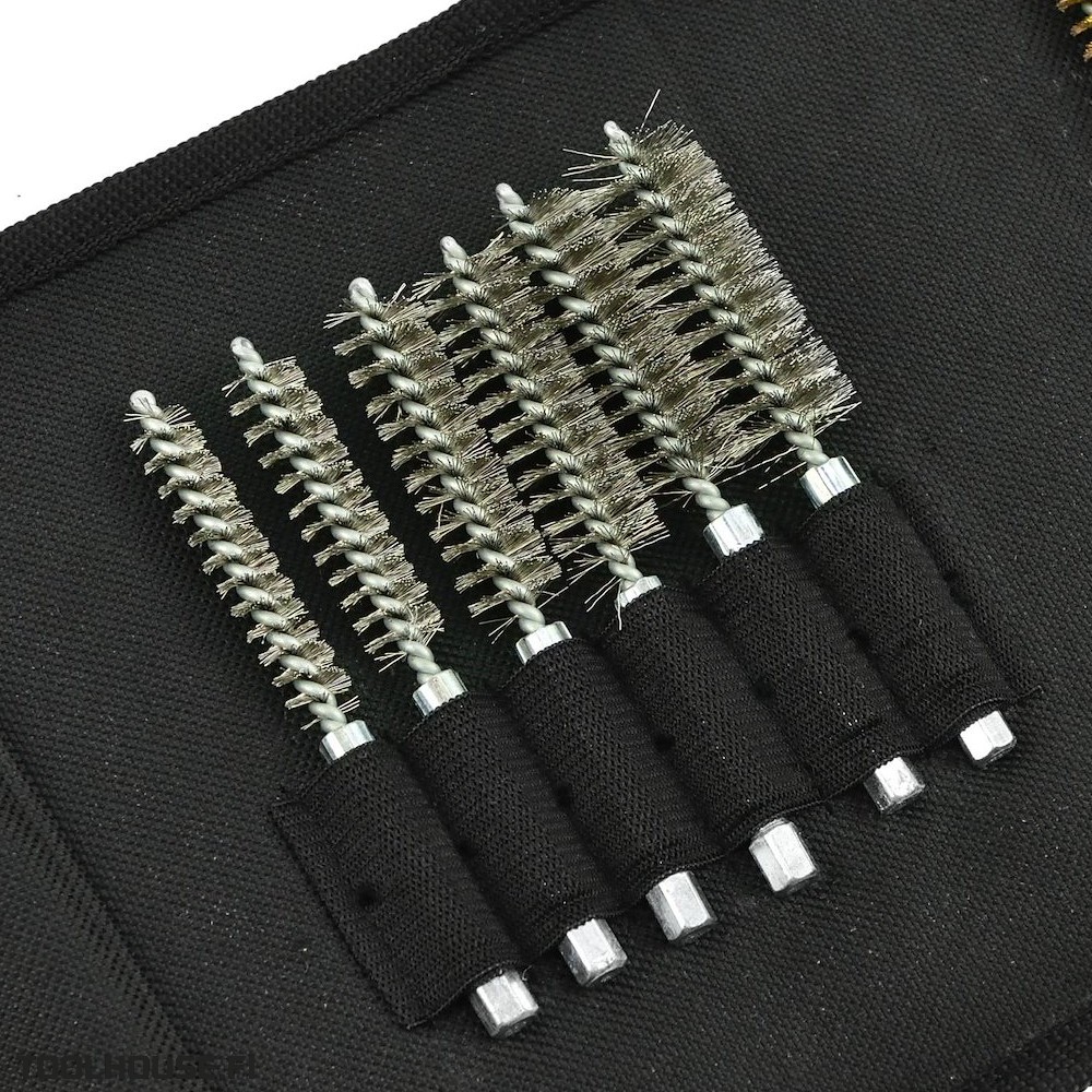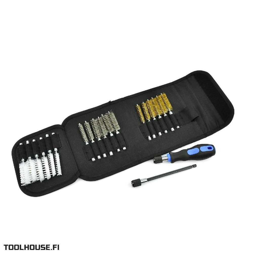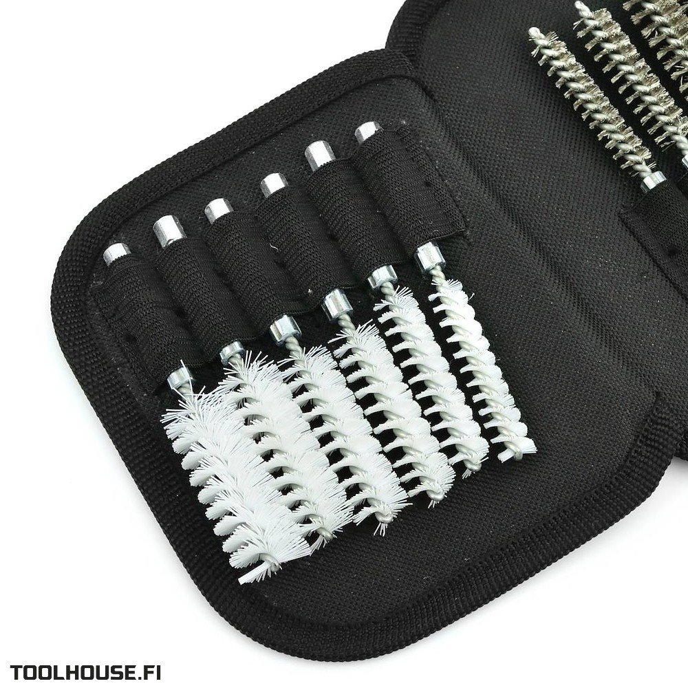 Harjasarja injektorin hylsyn sekä hehkutulppien ja sytytystulppien reikien puhdistukseen. Setti sisältää 18 harjaa eri kovuuksilla ja halkaisijoilla.
